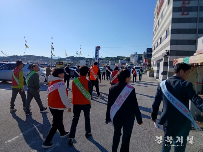 울진군(군수 손병복)은 지난 10월 27일 죽변항 수산물 축제의 성공적 개최를 위해‘죽변항 수산물축제 대비 위생관리 강화 유관기관 협력 간담회’를 개최하고, 이어 죽변항 일대에서 위생·친절 캠페인을실시했다.