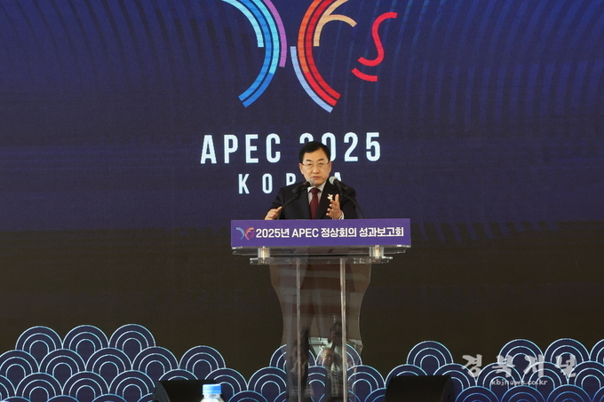 이날 이철우 지사는 성과보고를 통해 지난달 27일부터 이달 1일까지 경주에서 열린 제32차 APEC 정상회의의 주요 결과와 ‘경주선언’을 비롯한 3대 공식 성과, 도시 인프라 개선, 시민 참여, 지역경제 파급 효과 등을 소개했다.