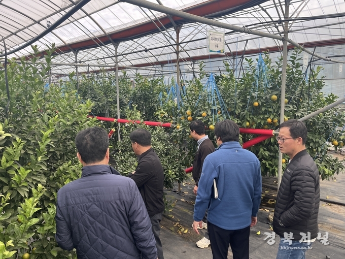 이번 벤치마킹은 기후 온난화에 대응하기 위한 아열대 작물 시험재배를 위해 올해 초 봉성면 금봉리에 준공된 스마트농업 테스트베드에 만감류를 도입하기 위해 마련됐다.