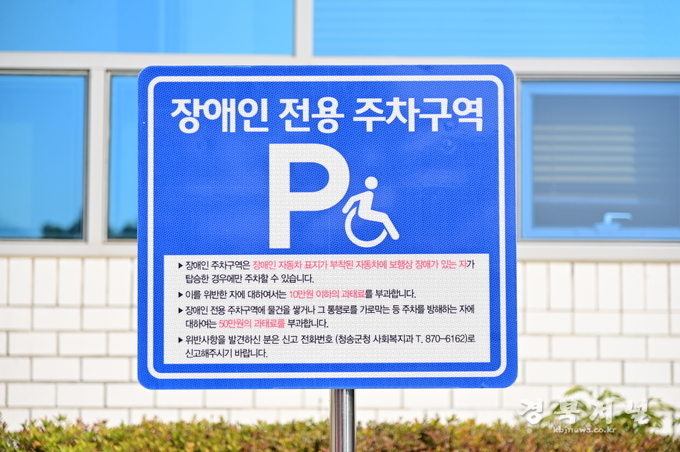 윤경희 청송군수는 “장애인전용주차구역은 장애인의 이동권과 접근성을 보장하기 위한 법적 보호공간임을 널리 알리고, 앞으로도 지속적인 계도와 단속을 통해 올바른 주차문화를 정착시키겠다.”며, “장애인의 이동권 보장을 위해 군민 여러분의 적극적인 협조를 부탁드린다.”라고 당부했다.