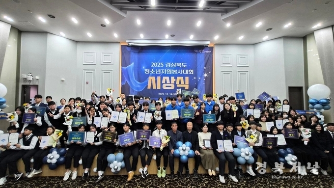 경상북도와 경상북도청소년활동진흥센터는 14일 안동그랜드호텔에서 청소년과 지도자 120여 명이 참여한 가운데 자원봉사활동으로 지역사회에 공헌한 청소년, 동아리, 지도자, 활동 터전을 격려하기 위해‘2025 경상북도청소년자원봉사대회’를 개최했다.