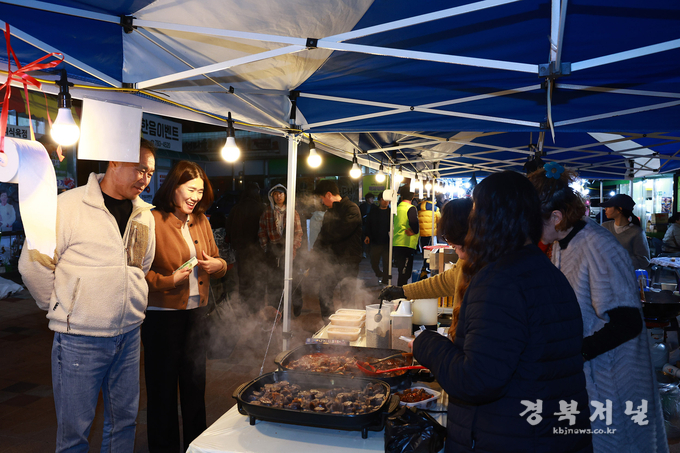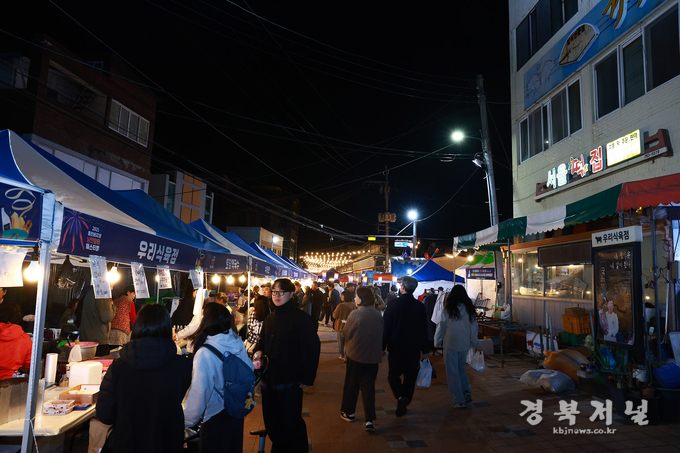 축제 첫날인 14일에는 오후 6시 개막식을 시작으로 울진 지역 예술인 버스킹 공연을 비롯해 클라운 마임, 가수 공연이 펼쳐져 시장 일대를 축제 분위기로 물들였다.