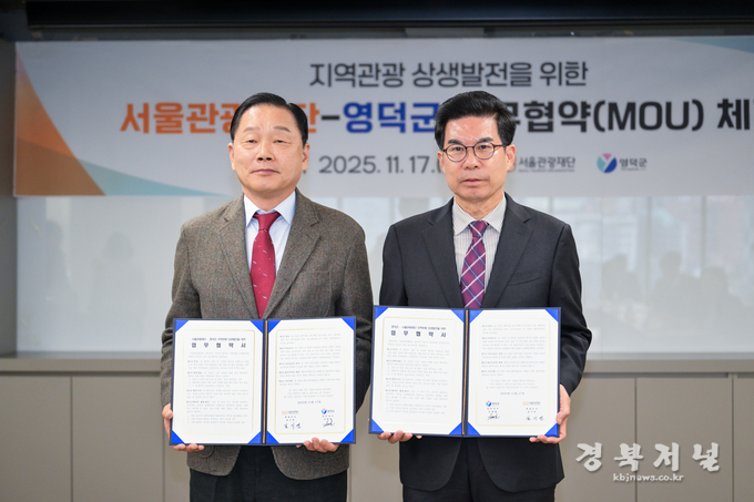 영덕군은 서울관광재단과의 협력·교류를 강화하고 지역 관광산업의 지속 가능한 발전과 성장을 함께 도모하기 위해 지난 17일 서울관광플라자 7층 대회의실에서 ‘지역관광 상생발전을 위한 업무협약’을 체결했다.