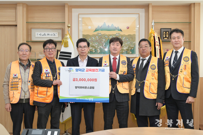 영덕라이온스클럽 회원들이 지난 2일 우수 인재 양성과 취약계층 지원을 위해 교육발전기금 300만 원과 불우이웃돕기 성금 100만 원을 영덕군에 기탁했다.