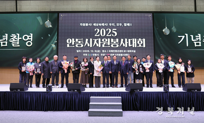 안동시자원봉사센터(센터장 고운자)는 5일 자원봉사자의 날을 맞아, 안동국제컨벤션센터 대회의실에서 헌신적인 나눔을 실천한 봉사자들을 격려하고 한 해 자원봉사활동을 마무리하는 ‘2025 안동시자원봉사대회’를 성황리에 개최했다.
