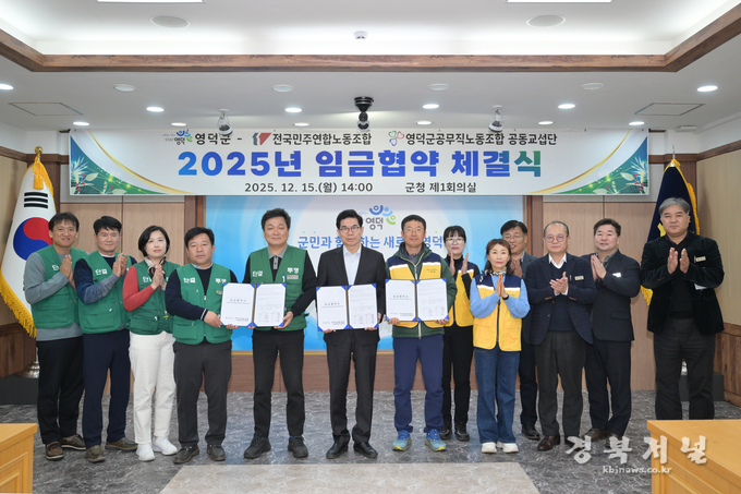 영덕군은 지난 15일 청사 제1회의실에서 노사 양측 교섭위원 15명이 참석한 가운데 ‘2025년 공무직 임금협약 체결식’을 개최했다.