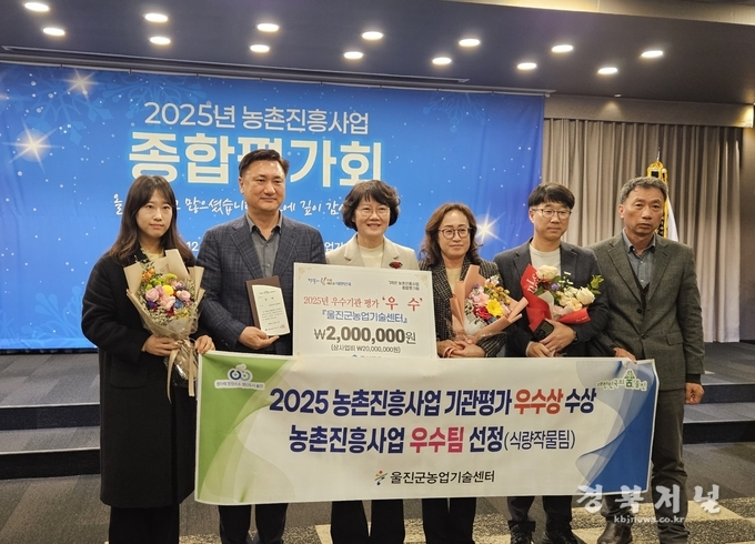 울진군농업기술센터(소장 손용원)가 경상북도농업기술원이 주관한 2025년 농촌진흥사업 종합평가회에서 우수기관상을 수상한데 이어, 식량작물팀이 최우수상을 수상하는 성과를 거두었다.