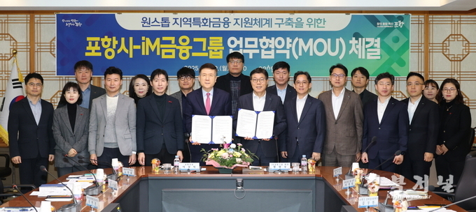 포항시는 29일 전국 지방자치단체 중 최초로 총 150조 원 규모의 ‘국민성장펀드’ 중 지방 공급분인 60조 원을 지역 산업에 신속히 수혈하기 위해 iM금융그룹과 ‘원스톱 지역특화금융 지원체계 구축을 위한 업무협약(MOU)’을 체결했다.