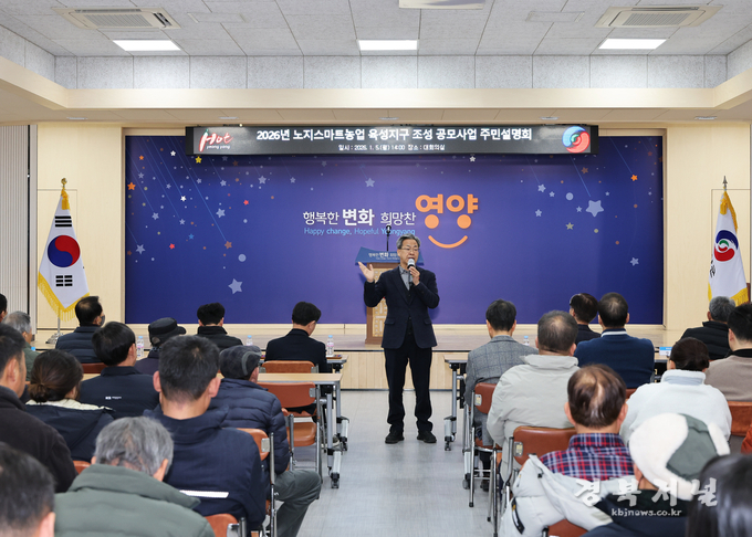 영양군은 1월 5일(월), 군청 대회의실에서 『2026년 노지 스마트농업 육성지구 공모사업』추진을 위한, 농업인을 대상으로 주민설명회를 개최했다고 밝혔다.