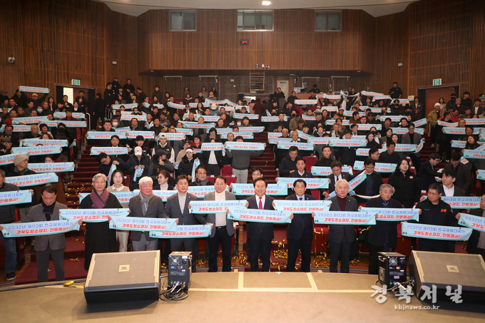 특히 행사 말미에는 ‘2032년 제113회 전국체육대회 유치’를 기원하는 문구가 담긴 수건을 참석자 전원이 함께 펼치는 퍼포먼스를 진행해, 유치 추진에 대한 참여 의지를 상징적으로 표현했다.