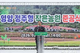 영양군이 인구 감소 위기에 대응하기 위한 정주 기반시설을 완성하고, 영양형 인구유입 모델을 본격 가동한다. 영양군은 2월 24일 청기면 청기리 옛 청기분교장 부지에서 ‘영양 정주형 작은농원’ 준공식을 개최했다. 이날 행사에는 군청 관계자와 지역 주민 등 100여 명이 참석해 경과 보고와 테이프 커팅식, 시설 관람 등을 진행했다. 정주형 작은농원 조성사업은 지방소멸 대응과 안정적 인구 정착 기반 구축을 목표로 지방소멸대응기금을 활용해 추진된 사업이다. 총사업비 72억 원(광역기금 20억 원, 기초기금 52억 원)을 투입해 청기면 청기리 451-1번지 일원에 18평 규모 단독주택 20호와 농산물유통지원센터 1동을 조성하고, 스마트팜 운영을 위한 기반공사를 완료했다. 사업 규모는 대지면적 8,604㎡, 연면적 1,434㎡에 이른다. 2022년 9월 지방소멸대응기금 투자사업 확정 이후 사전 행정절차를 이행하고 2024년 7월 착공, 2025년 12월 준공을 완료했다. 이번 사업은 단순한 주거 공급을 넘어 주거·영농·공동작업 기능을 결합한 ‘정주형 인구유입 모델’이라는 점에서 의미가 크다. 입주자는 주택과 함께 스마트팜과 공동작업장을 활용해 안정적인 영농 기반을 마련