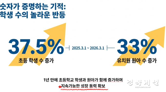 하지만 2026학년도 3월 예비 편성기준으로 1년 전에 비해 초등학생 수 37.5%, 병설유치원 원아가 33% 증가하며 기금 운영을 통한 지속가능한 발전 방향을 보여주 었다.