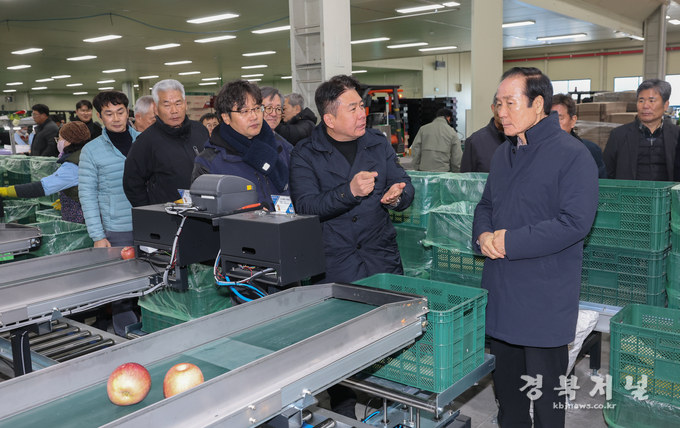 의성군(군수 김주수)은 1월 28일(수) 의성읍에 위치한 과수거점APC에서 「인공지능 활용 사과선별기 시연회」를 개최했다.