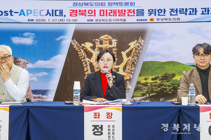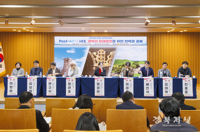 경상북도의회는 지난 27일 경상북도청 다목적홀에서 APEC 및 문화관광분야 전문가 및 관계공무원 등과 함께 ‘Post-APEC시대, 경북의 미래발전을 위한 전략과 과제’라는 주제로 정책토론회를 개최했다.