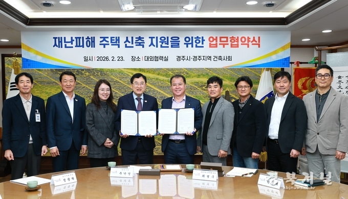 경주시는 23일 경주지역 건축사회와 ‘재난피해 주택 신축 지원을 위한 업무협약’을 체결했다고 24일 밝혔다.
