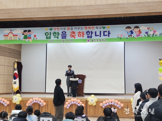 울진초등학교(교장 박찬억)에서는 3월 3일(화) 오전 10시 본교 연송관에서 2026학년도 입학식을 실시하였다.