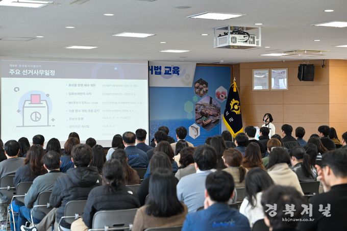 ‘지방공무원이 알아야 할 공직선거법’이라는 주제로 열린 이번 교육은 영덕군선거관리위원회 정현아 사무과장을 강사로 공직자의 정치적 중립 의무를 재확인하고, 법령 미숙지로 발생할 수 있는 선거법 위반 행위를 사전에 차단하기 위해 마련됐다.