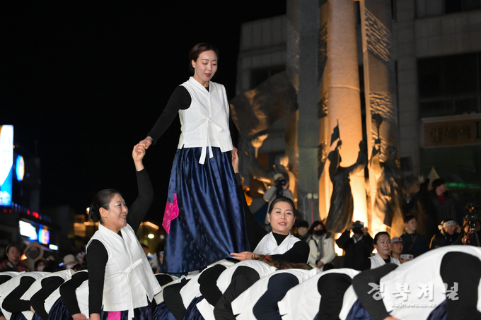 특히 전야제의 하이라이트인 ‘횃불 대행진’에는 수많은 군민과 관광객이 직접 횃불을 들고 영해 시가지를 행진해 107년 전 영해 장터를 가득 메웠던 뜨거운 함성을 몸소 재현하며 깊은 감동을 선사했다.
