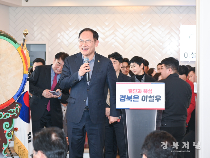 이철우 예비후보는 ‘결단과 뚝심, 경북은 이철우’라는 슬로건 아래 경상북도의 대전환과 보수 정치 기반 수호라는 두 가지 핵심 비전을 천명하며 선거사무소 개소식을 개최했다.
