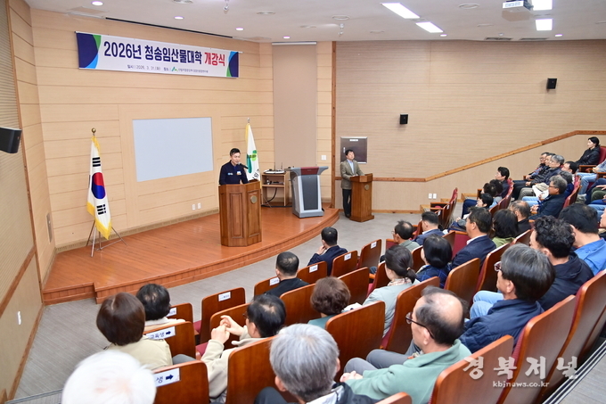 청송군은 31일 산림조합중앙회 임업인종합연수원에서 초청 내빈과 입학생 등 70여 명이 참석한 가운데 청송임산물대학 개강식을 개최하고 본격적인 학사일정에 들어갔다.