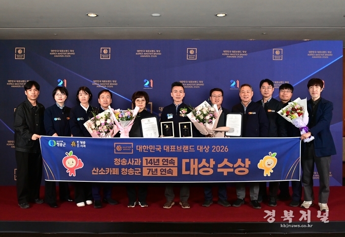 청송군은 14일 열린 ‘2026 대한민국 대표브랜드 대상 시상식’에서 사과 브랜드 부문 「청송사과」가 14년 연속 대상, 도시 브랜드 부문 「산소카페 청송군」이 7년 연속 대상을 수상했다고 밝혔다.