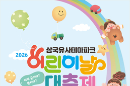 군위문화관광재단(대표이사 사공정한)은 다가오는 어린이날을 맞아 오는 5월 2일(토)부터 5월 5일(화)까지 3일간(5월 4일 월요일 휴장) 삼국유사테마파크에서‘2026 어린이날 대축제’를 개최한다.