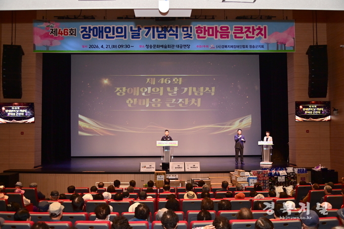 청송군은 (사)경북지체장애인협회 청송군지회(지회장 현갑삼) 주관으로 4월 21일 청송문화예술회관 대공연장에서 ‘제46회 장애인의 날 기념식 및 한마음 큰잔치’를 성황리에 개최했다고 밝혔다.