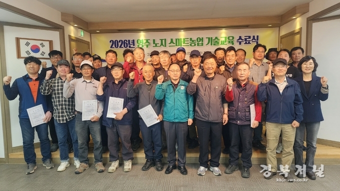 영주시농업기술센터는 지난 23일 농업체험교육관에서 교육생과 관계자 등 36명이 참석한 가운데 ‘영주 노지 스마트농업 기술교육’ 수료식을 개최했다.