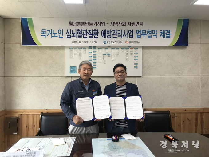 청송군(군수 윤경희)은 청송군보건의료원과 청송재가노인지원센터가 지난 10일 독거노인을 대상으로 하는 심뇌혈관질환 예방관리사업 업무협약을 체결했다고 밝혔다.