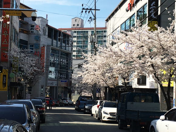 [안동]안동시 옥동 상가지역 가로변에 벚꽃이 만발해 오가는 시민들의 눈을 즐겁게 하고 있다.