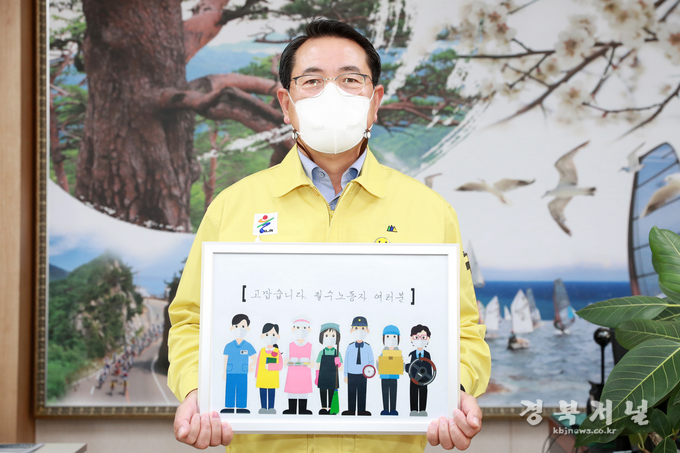 전찬걸 울진군수가 지난 22일 코로나19 상황 속에서도 보건의료, 돌봄, 배달 운송 등 대면 노동에 종사하는 필수노동자들을 응원하기 위한 ‘고맙습니다, 필수노동자’ 캠페인에 동참했다.
