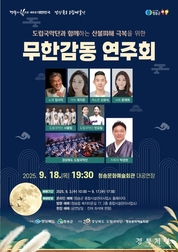 청송군(군수 윤경희)은 오는 9월 18일 오후 7시 30분, 청송문화예술회관 대공연장에서 ‘도립국악단과 함께하는 산불 피해 극복을 위한 무한감동 연주회’를 개최한다. 이번 공연은 1992년 창단된 경상북도 도립국악단과 청송군이 공동으로 기획했으며, 올봄 산불 피해로 어려움을 겪은 지역 주민들을 위로하고 함께 극복해 나가자는 뜻을 담았다. 연주회는 정통 국악 연주에 현대적 감각을 더한 다채로운 무대로 구성된다. 객원 출연자로는 트로트 가수 곽지은, 색소폰 연주자 신유식, 그리고 깊은 울림으로 사랑받는 노래하는 장사익이 참여해 국악단과 특별한 협연을 선보인다. 무대에서는 ▲오케스트라를 위한 뱃노래 ▲민요연곡 ▲대중가요를 위한 국악관현악 ▲색소폰과 국악관현악 ▲장사익의 우리소리 ▲사물놀이를 위한 관현악 ‘신모듬 3악장 놀이’ 등 다채로운 프로그램이 마련돼 관객들에게 감동과 잊지 못할 시간을 선사할 예정이다. 윤경희 청송군수는 “이번 연주회가 산불 피해로 어려운 시간을 보내는 주민들에게 작은 위로와 치유의 시간이 되기를 바란다.”라고 전했다. 최선학 기자 kbnews7005@hanmail.net