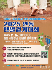 산불재난 극복과 제64회 경북도민체육대회 성공을 기원하는 안동 맨발걷기대회’가 오는 11월 16일(토) 10시 안동 낙동강변 ‘맨발로룰루랄라’ 일원에서 개최된다. 이번 행사는 지난해에 이어 두 번째로 열리며, 낙동강 음악분수 옆 다목적광장에서 개막식을 시작으로 ▲1코스 낙천교 방향 ▲2코스 태화동 어가골 수변공원을 왕복하는 코스로 운영된다. 안동시는 낙동강변을 따라 시민이 자연을 체험하고 건강을 즐길 수 있는 ‘맨발路 룰루랄라’를 조성했으며, 특히 실개천을 따라 조성된 ‘물속 걷는 길’은 여름철 시민의 대표적인 피서ㆍ힐링 명소로 큰 인기를 끌었다. 이번 대회는 이 공간을 배경으로 자연과 시민이 함께하는 건강축제의 장이 될 전망이다. 개막행사에서는 올 초 안동에 큰 피해를 입힌 산불재난의 조기극복을 기원하고, 내년 4월 안동시와 예천군이 공동 개최하는 제64회 경북도민체육대회 성공을 기원하는 퍼포먼스도 예정돼 있다. 참가 신청은 11월 15일까지 사전 접수가 가능하며, 현장 접수도 병행한다. 참가비는 1인당 5천 원으로, 참가자에게는 안동사랑상품권 5천 원이 페이백 형태로 지급된다. 안동시 관계자는 “이번 맨발걷기대회를 통해 산불재난 극복과 도민체전 성공 의지