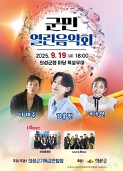 의성군(군수 김주수)은 의성군기독교연합회 주관으로 오는 9월 19일(금) 오후 6시, 의성군청 마당에서 「2025 군민열린음악회」를 개최한다고 밝혔다. 이번 음악회는 군민들의 문화 향유 기회를 넓히고 지역 공동체의 화합을 도모하기 위해 마련된 자리로, 약 1,000여 명의 군민이 함께할 것으로 기대된다. 무대에는 대중적 인기를 얻고 있는 가수 나태주, 김용빈, 이수연을 비롯해, 감미로운 하모니를 선사하는 이빛중창단과 금관 선율을 선사하는 love is brass가 출연해 다채롭고 감동적인 무대를 선보일 예정이다. 또한, 남녀노소 누구나 즐길 수 있는 공연으로 구성되어, 군민 모두가 문화로 소통하고 하나 되는 따뜻한 지역사회 분위기 조성에 기여할 것으로 기대된다. 김주수 의성군수는 “군민 열린음악회를 통해 군민 모두가 함께 즐기고 정서적으로 위로받는 소중한 시간이 되기를 바란다”며, “앞으로도 군민들의 일상 속에 문화가 자연스럽게 스며들 수 있도록 다양한 문화행사를 지속적으로 추진하겠다”고 말했다. 최선학 기자 kbnews7005@hanmail.net