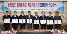 포항시는 15일 시청 중회의실에서 이차전지 염폐수 처리를 위한 기술개발 공모사업에 대비한 ‘이차전지 염폐수 처리 기술개발 공동협력 업무협약’을 체결했다. 이번 협약은 지난달 19일 기후에너지환경부가 공고한 ‘이차전지 염폐수 처리 기술개발사업’과 관련해 공모 선정 이전 단계에서 향후 기술 실증과 현장 적용을 지원하기 위한 지방정부와 참여기업 간 공동 협력체계 구축을 위해 추진됐다. 이날 협약식에는 포항시 일자리경제국장을 비롯해 경상북도 기후환경국장과 공모사업 주관기업인 ㈜범우, ㈜에코프로HN, ㈜테크윈, ㈜효림이엔아이, ㈜유앤유, ㈜엔이비 등 관계자 17명이 참석했다. 이차전지 염폐수는 고염분·고농도 특성으로 공공 처리가 어려워 현재 기업별로 증발농축법(MVR) 등 개별 처리시설을 설치해 대응하고 있으나 국내외 환경규제 강화와 환경보전에 대한 사회적 책임 증대, 산업용 전기요금 인상 등으로 기업 단독 대응에는 한계가 있으며, 이는 장기적으로 국가 이차전지 산업의 원가 경쟁력에도 영향을 미치고 있다. 이에 기후에너지환경부는 국가 첨단산업인 이차전지 산업의 지속가능성과 글로벌 경쟁력 강화를 위해 ▲이차전지 염폐수 무방류 공정 기술개발 ▲이차전지 염폐수 공공처리 기