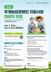 영주시는 지역 농업의 고령화와 인력 감소에 대응하고, 안정적인 농업 경영 기반을 갖춘 전문 농업인을 육성하기 위해 ‘2026년 후계농업경영인 육성사업’ 대상자를 모집한다. 이번 사업은 농업에 뜻을 둔 청년과 예비 농업인이 영농 초기 단계에서 겪는 자금 부담을 덜고, 안정적으로 농업에 정착할 수 있도록 지원하기 위해 마련됐다. 모집 대상은 사업 시행 연도 기준 만 18세 이상 49세 이하(1976년생부터 2008년생까지)의 예비 농업인과 영농 경력 10년 미만의 농업경영인이다. 신청자는 실거주지와 주민등록상 주소지, 사업장이 모두 영주시에 있어야 한다. 선정된 후계농업경영인에게는 농지와 축사 부지의 구입·임차를 비롯해 시설 설치, 종묘·사료 구입, 농기계 마련 등에 필요한 자금을 최대 5억 원까지 지원한다. 지원 자금은 연리 1.5%의 정책자금으로, 5년 거치 후 20년 동안 분할 상환하는 조건이다. 신청은 오는 2월 11일(화) 오후 6시까지 차세대 농림사업정보시스템인 ‘농업e지’를 통해 온라인으로 접수하면 되며, 사업 관련 세부 사항은 농업e지 누리집에서 확인할 수 있다. 영주시 관계자는 “이번 사업을 통해 열정과 역량을 갖춘 농업 인재들이 안정적으로 농업