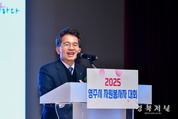 영주시는 지난 28일 영주시민회관에서 (사)영주시자원봉사센터(이사장 김철진) 주관으로 ‘2025 영주시자원봉사자대회’를 성황리에 마무리 했다고 밝혔다. 세계자원봉사자의 날(12월 5일)을 맞아 자원봉사자들의 노고를 격려하고 지역사회 봉사 문화를 확산하기 위해 마련된 이번 행사에는 유정근 영주시장 권한대행, 박성만 경상북도의회 의장, 김병기 영주시의회 의장, 기관·단체장, 자원봉사자 등 350여 명이 참석했다. 1부 기념식에서는 1만 시간 이상 자원봉사활동을 실천한 봉사자 1명과 우수 자원봉사 활동처 1개소에 인증패가 수여되었으며, 이어 영주시장·국회의원·영주시의회 의장·영주시자원봉사센터 이사장 표창 등 총 10개 부문에서 36명의 봉사 유공자가 표창을 받았다. 2부 행사에서는 5인조 혼성그룹 ‘비스타’의 축하공연이 펼쳐져 자원봉사자들에게 감사와 응원의 메시지를 전하며 분위기를 더욱 고조시켰다. 행사에 참석한 자원봉사자들은 “한 해 동안의 노력이 인정받아 큰 보람을 느낀다”, “여러 봉사자들과 함께 모여 서로의 활동을 되돌아보는 뜻깊은 시간이었다”는 소감을 전했다. 현장은 서로의 헌신에 박수를 보내는 따뜻한 분위기로 가득했으며, 지역사회 봉사의 의미를 다시금