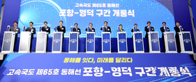 경북 동해안권 교통망을 본격적으로 하나로 잇는 포항~영덕 고속도로 개통식이 7일 포항휴게소(포항 방향)에서 성황리에 개최됐다. 포항~영덕 고속도로는 총연장 30.92km, 왕복 4차로로 1조 6천억 원이 투입돼 2016년 착공 후 9년 만에 완공됐다. 이날 이철우 경상북도지사, 김정재·이상휘 국회의원, 이강덕 포항시장, 김광열 영덕군수, 국토교통부 관계자 등 주요 인사와 시민 200여 명이 참석해 고속도로의 전면 개통을 축하했다. 이 노선은 포항시 북구 흥해읍 곡강리에서 영덕군 강구면 상직리를 잇는 동해선(고속국도 제65호선)의 핵심 구간으로, 오는 8일 오전 10시부터 일반 차량 통행이 전면 허용된다. 개통으로 포항~영덕 간 이동 시간이 기존 국도 7호선 대비 20분 이상 단축돼 동해안 광역 경제권을 잇고 관광 활성화는 물론 물류 효율성이 크게 향상될 전망이다. 특히 울산~포항 고속도로, 향후 추진 예정인 영일만대교가 연결되면 동해안 광역경제권을 남북으로 잇는 핵심 교통축이 완성돼 국가 균형발전의 새로운 동력이 될 전망이다. 최근 이차전지, AI, 바이오 등 신성장 산업으로 지역 산업 구조를 다변화하고 있는 포항은 이번 고속도로 개통으로 산업·물류·관광 기