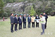 지난 23일(목) 군위군(군수 김진열)은 민선8기의 최대 공약사업인 “군위군 파크골프장 조성사업” 현장을 방문해 추진상황을 점검했다. 이날 현장점검에는 김진열 군수를 비롯해 관련 부서장 및 감리사, 시공사 등이 공정 현황과 시설 안전관리, 주변 기반시설 연계 방안 등을 면밀히 살폈다. “군위군 파크골프장 조성사업”은 사업비 약 343억원(1단계 215억원)을 투입해 의흥면 이지리 산115번지 일원에 180홀 규모의 파크골프장 조성을 목표로 하고 있으며, 현재 1단계 사업으로 4개코스 81홀을 2026년 준공하고 이어서 나머지 99홀을 2027년 조성하는 대규모 프로젝트로, 준공 시 전국 최대 규모를 자랑하는 군위의 랜드마크로 우뚝서게 된다. 김진열 군위군수는 “파크골프는 남녀노소 누구나 즐길 수 있는 생활체육으로, 군민 건강 증진은 물론 지역 관광 활성화로 지방소멸지역에 활력을 불어넣는 계기가 될 것”이라며 “공사 과정에서는 안전을 최우선으로 하고, 군민들이 자랑할 수 있는 명품 여가 공간으로 조성하겠다”라고 말했다. 군위군 관계자는 내년 상반기 중 시범 운영을 거쳐 본격 개장이 될 수 있도록 최선을 다하겠다고 밝혀왔다. 최선학 기자 kbnews7005@ha