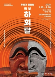 안동문화예술의전당은 신년을 맞아 송강미술관과 공동 주관으로 문화관광 활성화 특별전 「우리가 몰랐던 국보, 하회탈展」을 1월 30일(금)부터 2월 28일(토)까지 안동문화예술의전당 상설갤러리에서 개최한다. 이번 전시는 안동에서 탄생해 오늘날까지 전승돼 온 하회탈을 중심으로, 우리가 익숙하다고 생각했지만, 미처 알지 못했던 국보 하회탈의 역사적ㆍ예술적ㆍ정신적 가치를 새롭게 조명하고자 한다. 대한민국 국보 121호 ‘하회탈’, 천년의 표정에 담긴 이야기와 예술적 가치를 들여다보며, 하회탈을 단순히 관람하는‘유물’이 아닌‘읽고 사유하는 국보’로 마주하기를 제시한다. 관람객들은 탈 하나하나에 담긴 상징과 이야기, 그리고 그 속에 스며든 민중의 삶과 공동체 정신을 따라가며 천 년의 시간 속에서 이어져 온 한국 전통문화의 깊이를 새롭게 발견할 수 있을 것이다. 김동표 장인의 하회탈 복원작 9점, 이희복 도예가의 도자기 하회탈 작품, 관련 사진과 영상 자료 등을 한자리에서 만나볼 수 있으며, 특히 서양화가 故권준 작가가 하회별신굿탈놀이의 8마당 서사를 회화적으로 풀어낸 24점의 유화 작품은 탈놀이가 지닌 극적 구조와 민중적 상상력을 입체적으로 조명한다. 다양한 매체로 구성