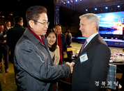 경상북도는 30일 경주 더케이호텔에서 ‘베트남 정상과의 만남의 날’ 행사를 개최했다. 이번 행사는 경상북도가 2005년에 베트남 타이응우옌성 룽반마을에 최초로 새마을시범마을 조성한 것을 계기로 시작된 새마을세계화사업 20주년을 기념하기 위해 마련됐다. ‘베트남 정상과의 만남의 날’ 행사에는 APEC 정상회의 참석을 위해 방한한 르엉 끄엉 베트남 국가주석과 박성만 경상북도의회의장, 김석기 국회 외교통일위원장, 박현국 봉화군수를 비롯한 도내 새마을 관련 단체장이 참석했다. 또한 경상북도와 베트남 양자 협력의 가교역할을 하는 봉화군 소속 베트남 계절근로자 150여 명, 위덕대학교 재학 중인 베트남 유학생 40여 명, 화산이씨 종친회 회원 등 총 300여 명이 자리를 빛내며 행사의 의미를 더했다. 주요 행사 내용은 식전 공연, 이철우 경상북도지사 환영사 및 르엉 끄엉 베트남 국가주석 격려사, 기념품 교환, 경상북도-베트남 동행의 길 영상 시청, 우호·협력 퍼포먼스, 만찬 순으로 진행됐다. 특히, 기념품 교환에서는 이철우 도지사와 르엉 끄엉 베트남 국가주석은 성덕대왕 신종인 에밀레종과 동선 청동북 조각품을 각각 기념품으로 교환하며 새마을을 통해 미래에도 동행하기로 뜻