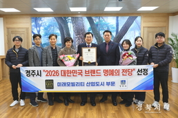 경주시가 ‘2026 대한민국 브랜드 명예의 전당’에서 ‘미래모빌리티 산업도시 부문’에 선정되는 영예를 안았다. ‘대한민국 브랜드 명예의 전당’은 산업정책연구원이 주최하고 산업통상자원부가 후원하는 권위 있는 시상으로, 국내 산업 발전과 소비자 만족에 기여한 우수 브랜드를 선정해 수여된다. 이번 선정은 경주시가 관광 중심 도시 이미지를 넘어, 미래모빌리티 산업을 핵심 성장동력으로 육성하며 산업 구조 전환을 추진해 온 성과를 대외적으로 인정받은 것으로 평가된다. 경주시는 경북도 내 자동차 부품기업이 가장 많이 집적된 산업 기반을 바탕으로, 외동읍 구어2산업단지에 ‘경주 e-모빌리티 연구단지’를 조성해 미래차 산업 전환을 위한 핵심 연구, 실증 거점을 구축했다. 연구단지에는 미래차 첨단소재 성형가공센터, 탄소소재 부품 리사이클링센터, 공유배터리 안전연구센터 등 3개 R&D 센터가 들어서 미래차 소재·부품·배터리 안전 분야를 아우르는 산업 인프라를 갖추고 있다. 총 850억 원 규모의 국·도·시비 및 민간투자가 투입된 연구단지는 시제품 제작, 시험, 분석, 신소재 제조 기술개발, 탄소 리사이클링, 배터리 시험, 인증 지원 등을 통해 지역 자동차 부품기업의 미래